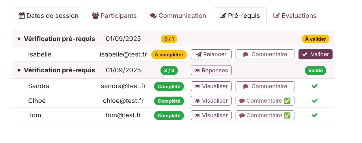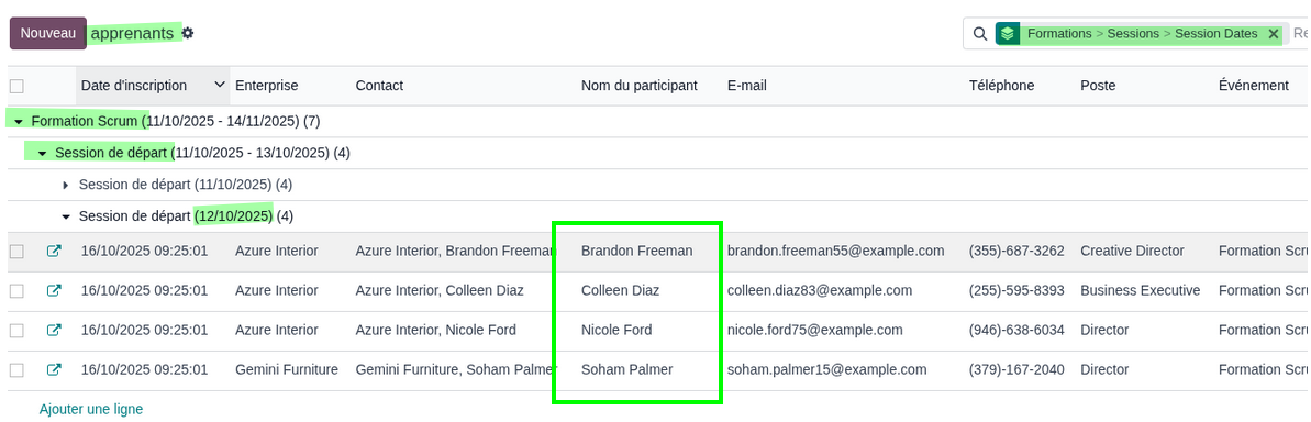 - Possibilité de regrouper vos apprenants par session et/ou par date de session