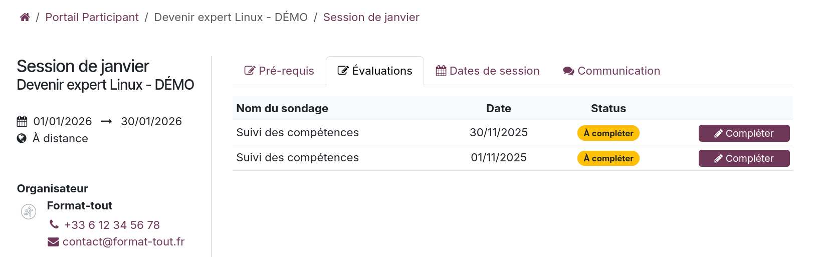 ➡️ L’intégration complète des évaluations : suivi des compétences, pré-requis, questionnaires de satisfaction… Tout est désormais centralisé, automatisé et parfaitement Qualiopi compatible.