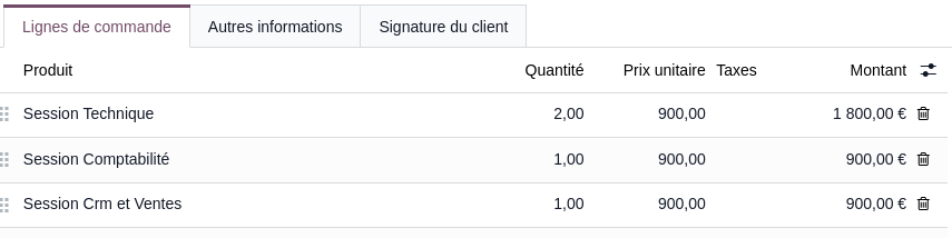 Dans votre devis, il est possible d'ajouter plusieurs produits de formation. Cette évolution très attendue du module va permettre dans les prochaines mise à jour d'affiner le lien entre la formation et la facturation.